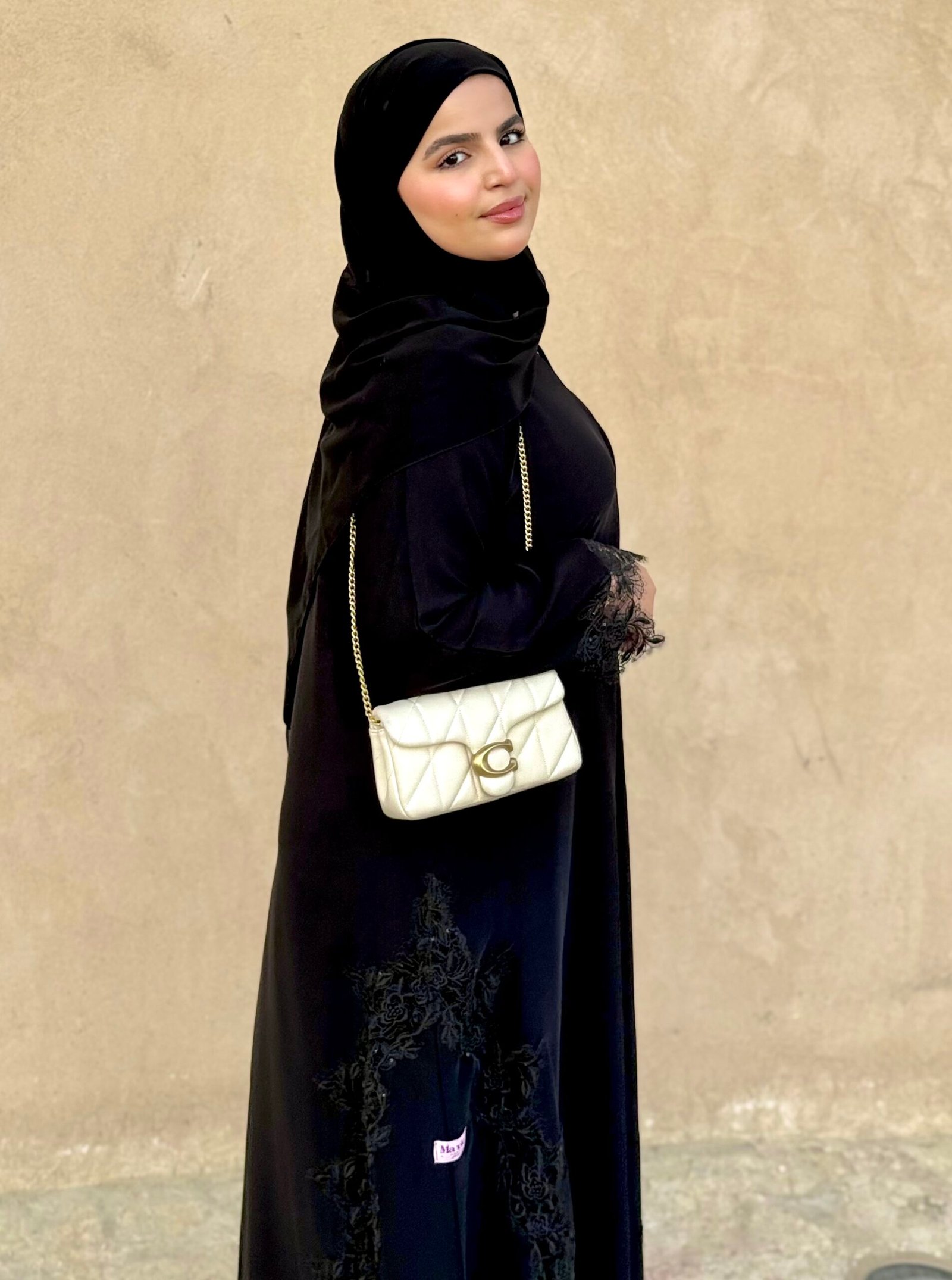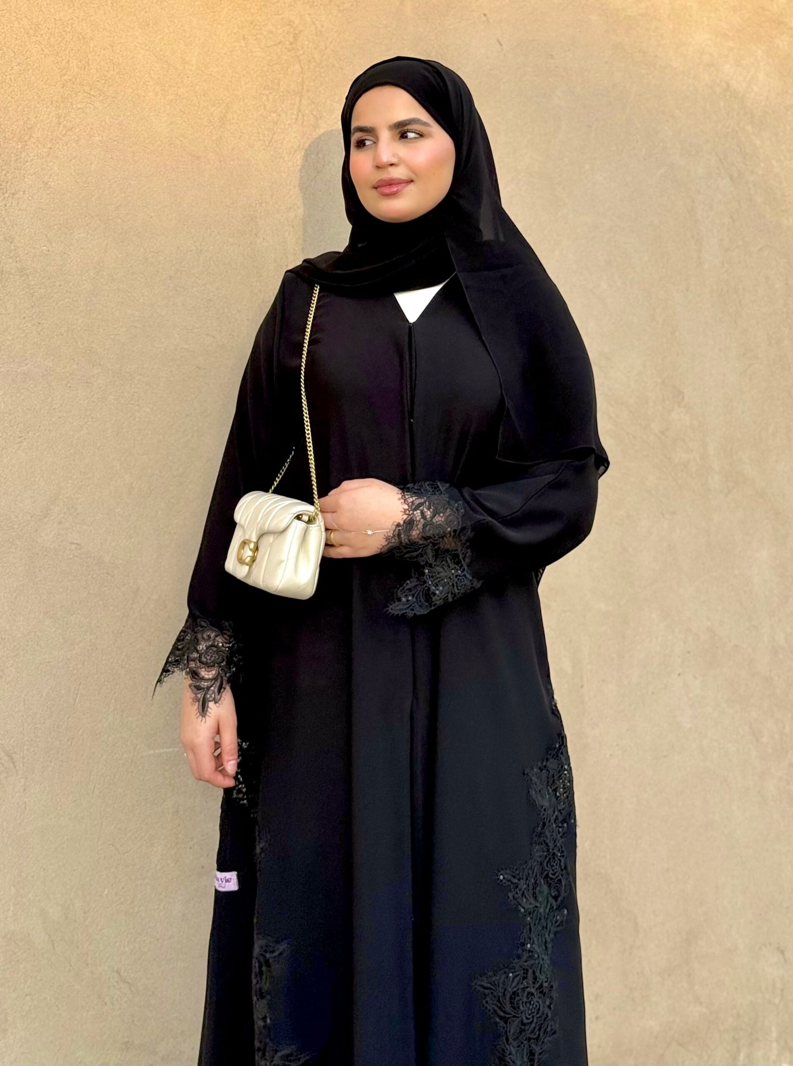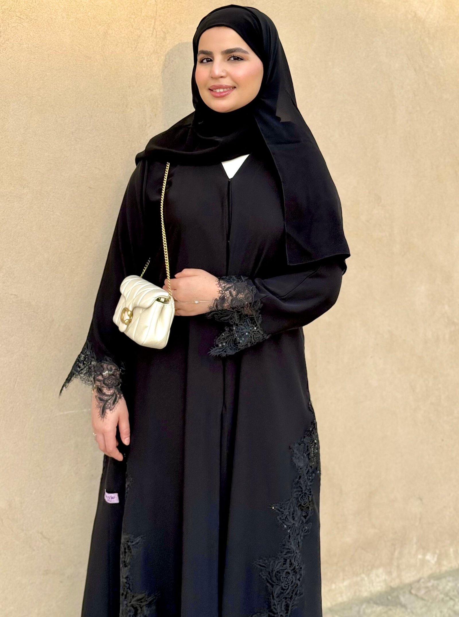 عباية من قماش ندى مع تفاصيل جانبية وعلى الأكمام، تجعلها مناسبة لجميع إطلالاتكم المميزة
