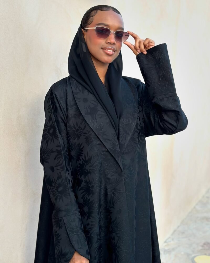 جوري: تتميز عباية جوري بقماشها الأسود الداكن المزيّن بالورود اللامعة، بالإضافة إلى تصميم أكمامها وياقتها التي أضفت عليها جمالًا إضافيًا.