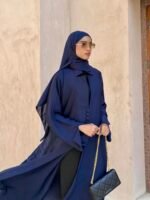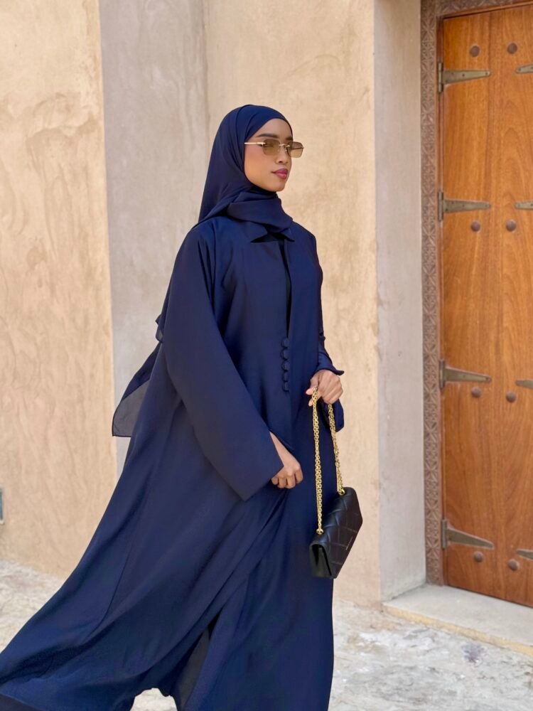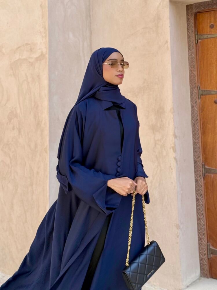 ليان: 290🇦🇪، عباية كحلي فخمة بقماش ناعم وتصميم أنيق مع إمكانية تغيير اللون حسب الرغبة